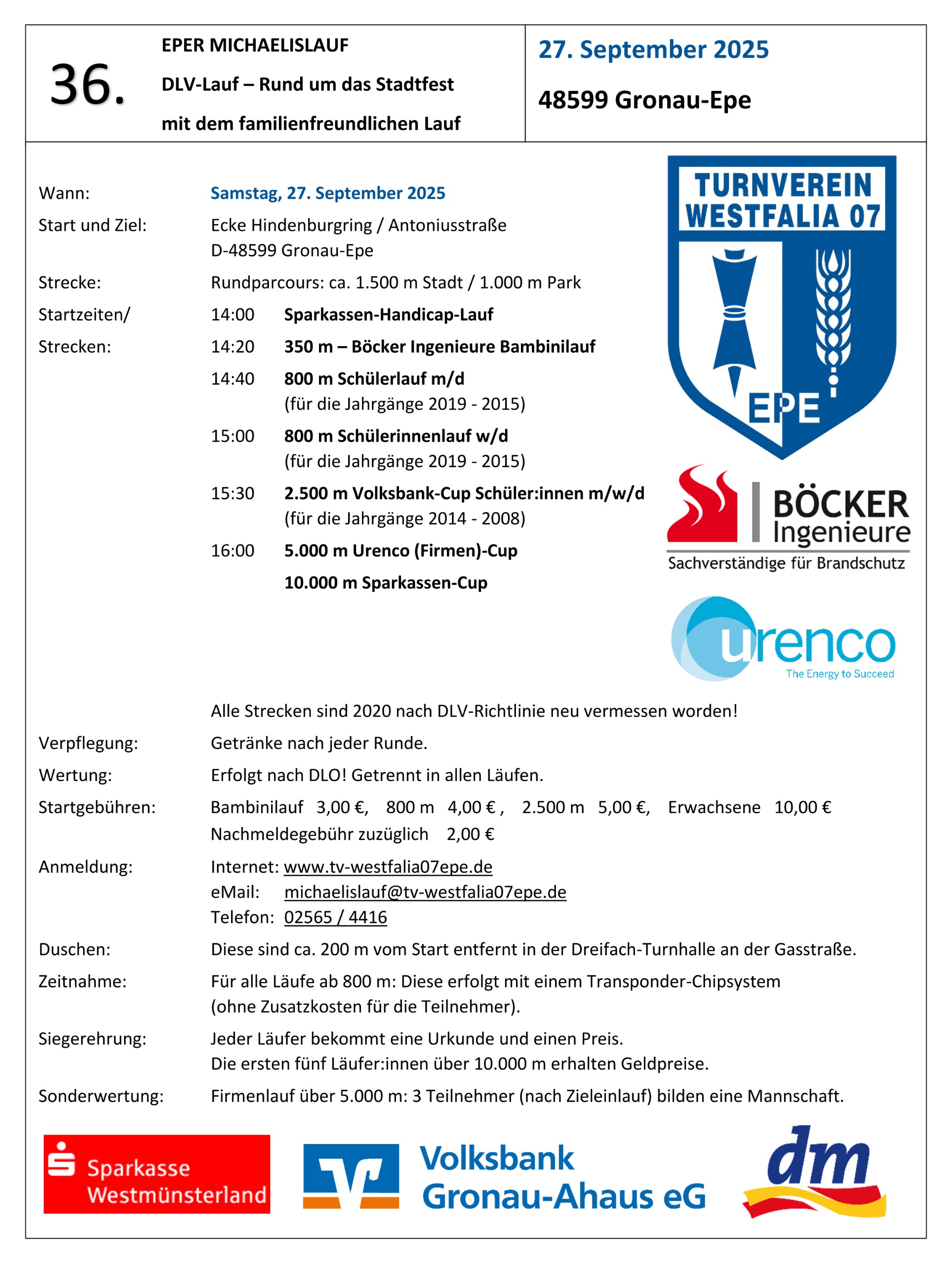 ACHTUNG: Auf Grund der evtl. Stichwahl findet der Michaelislauf in diesem Jahr schon am Samstag statt.